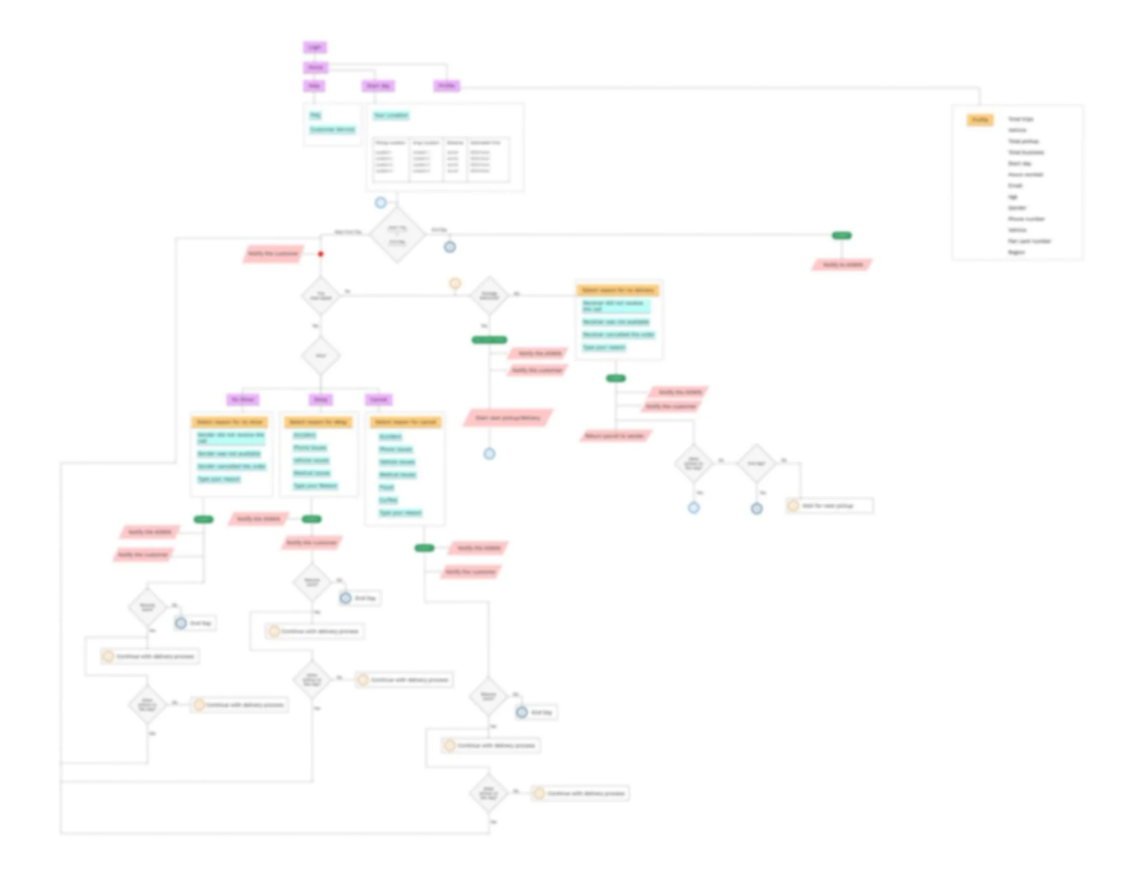 User Flow: After creating the sitemap, the next step was creating the user flow. There were different user flow for delivery depending on the type of delivery (open or exclusive).
